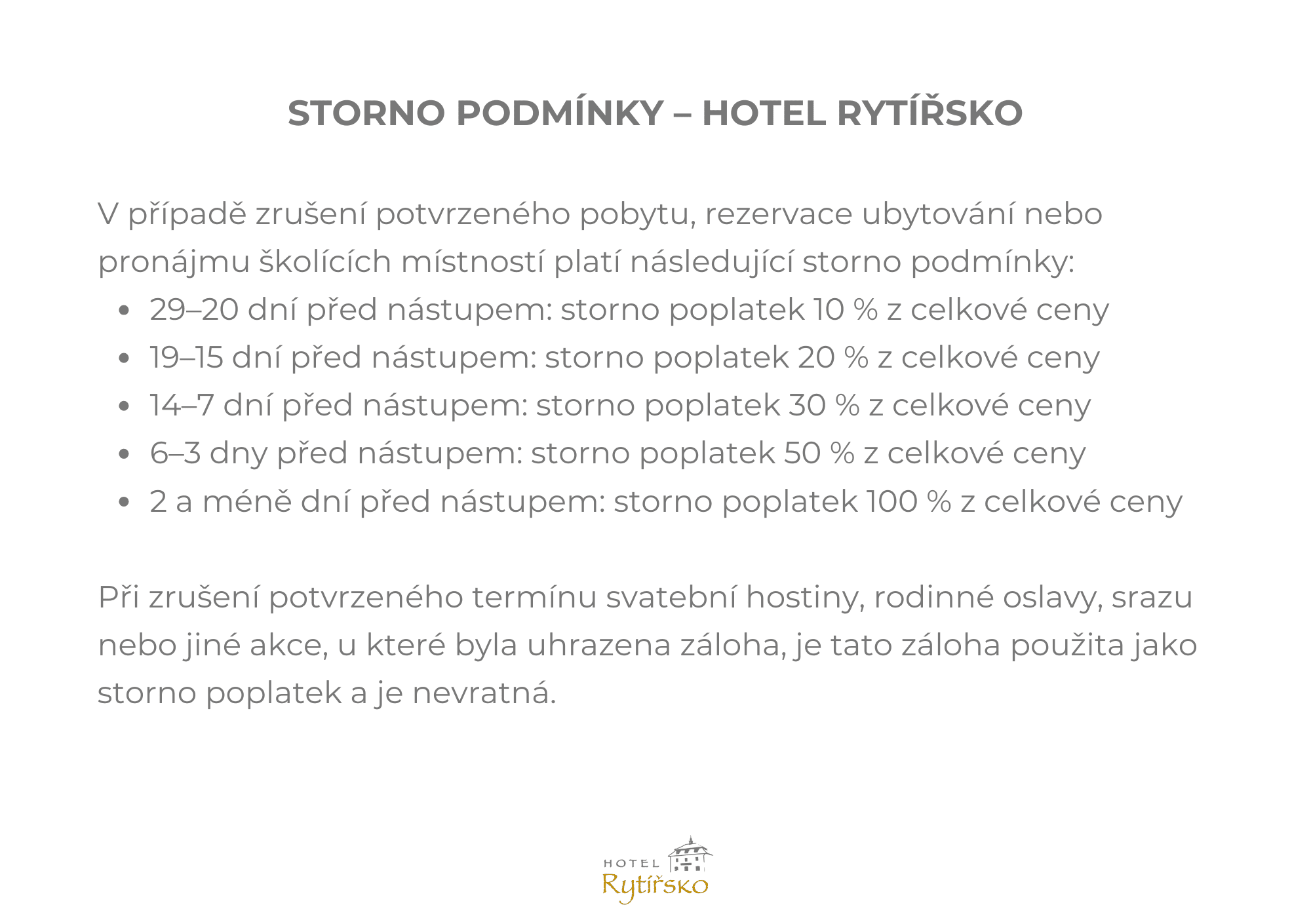 Podmínky rezervace: